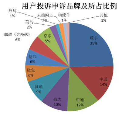 (4)因延误投诉申诉18件,数量较多品牌企业是顺丰(6件)、韵达(5件)。