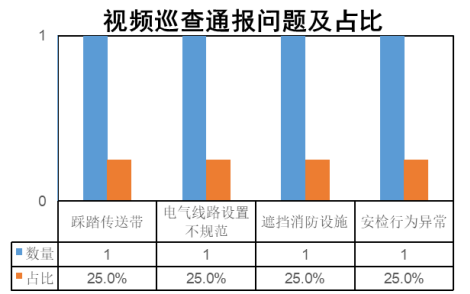 省、市邮政业安全中心通过“绿盾”工程视频巡查系统及中心监管平台对全市邮政企业、快递企业处理场所和营业网点进行在线巡查,对各类违规操作行为进行抓拍通报,本月共巡查点位117处,摄像头529个,累计发现4起疑似违规事件。