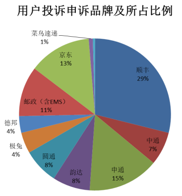 (2)因投递服务投诉申诉80件,数量较多品牌企业是申通(24件)、邮政(15件)、韵达(10件)。