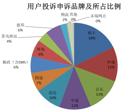(4)因延误投诉申诉30件,数量较多品牌企业是申通(10件)、京东(4件)、顺丰(4件)、圆通(4件)。